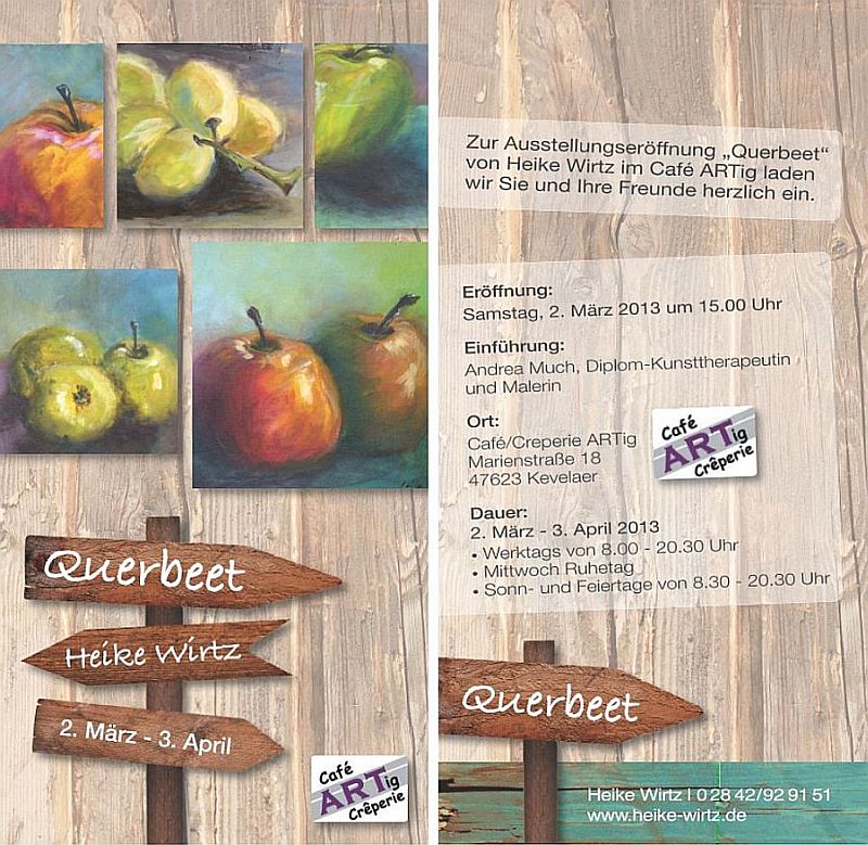2013 | Querbeet, ARTig, Kevelaer (EA) Blütenzauber, Dorsten (EA) KunstRaum, Altes Pfarrhaus, Kamp-Lintfort (GA) | ||||