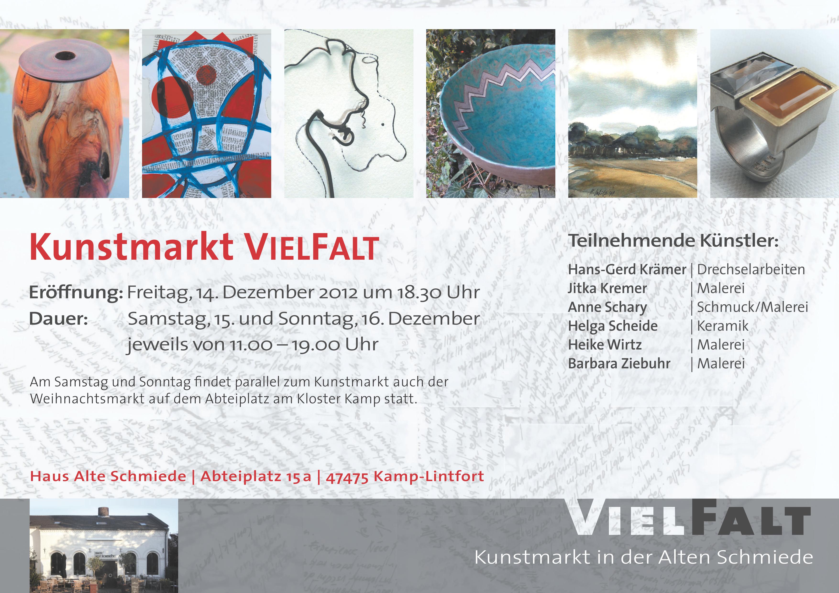 2012 | Knospen Blühen Welken, KUK´ma, Kunst und Kultur, Kamp-Lintfort (EA) kunstwerk natur, Stadthaus Rheinberg (EA) Vielfalt, Alte Schmiede, Kamp-Lintfort (GA) Kunst in der Maschinenhalle, Zeche Zweckel, Gladbeck (GA) | ||||