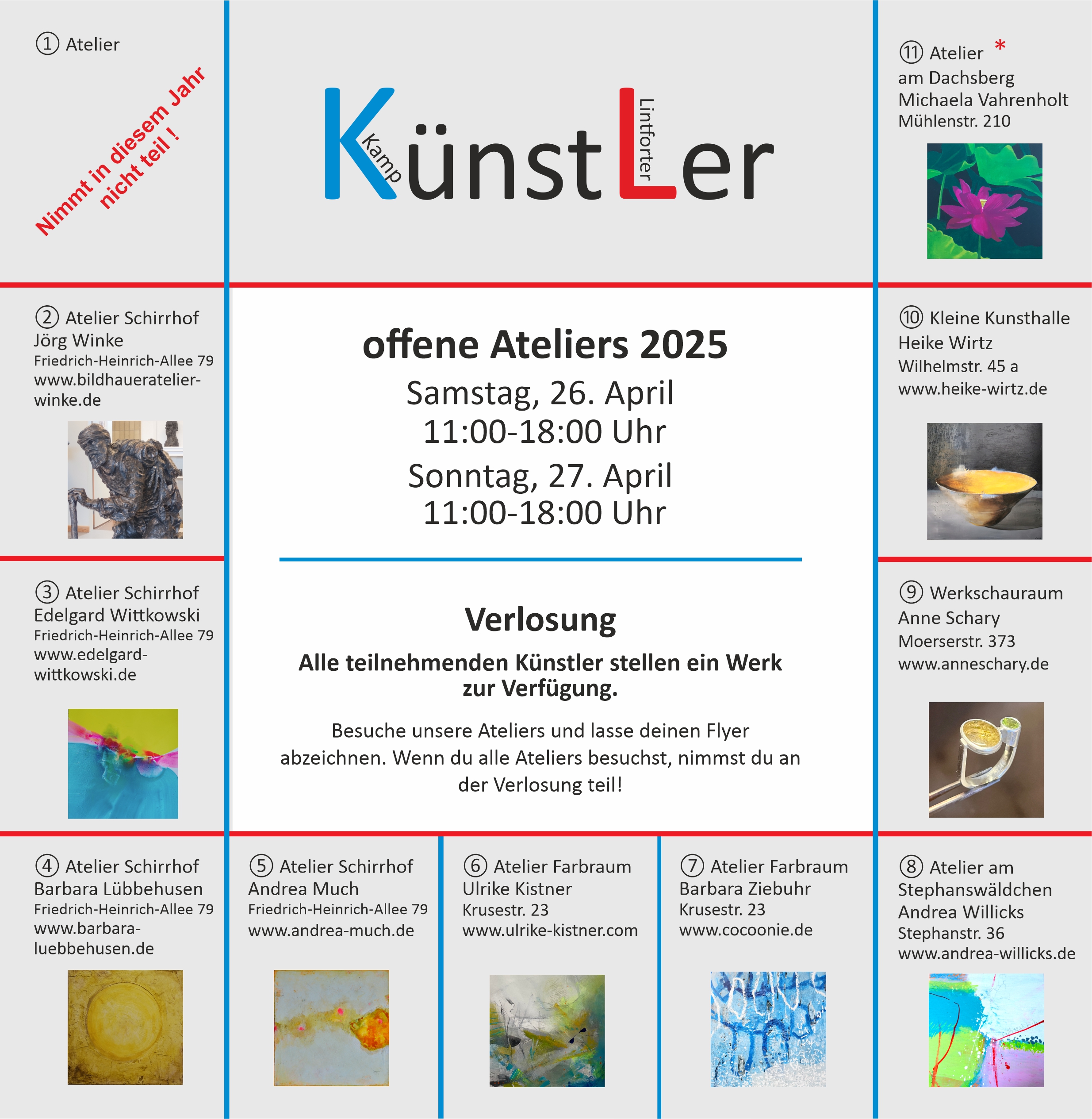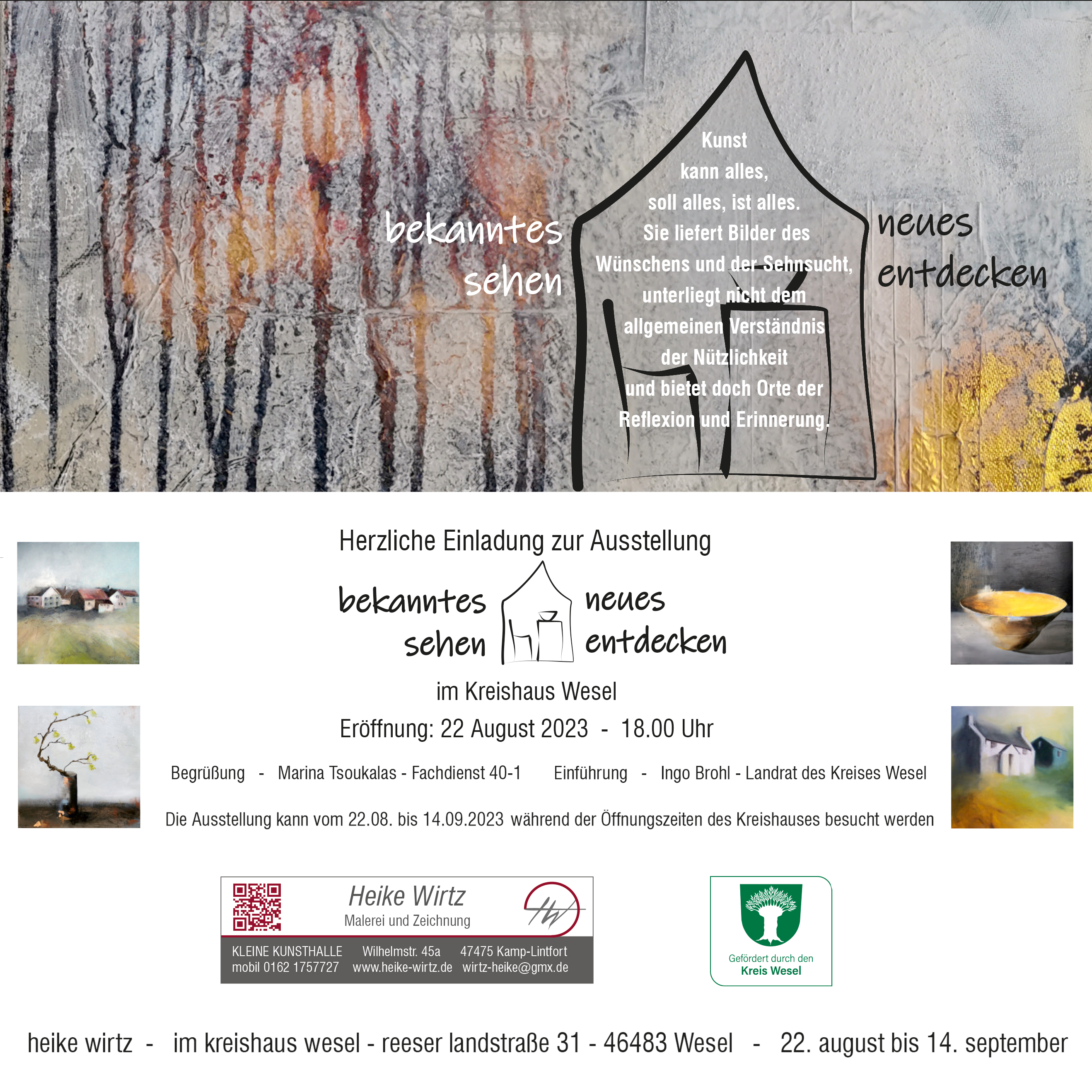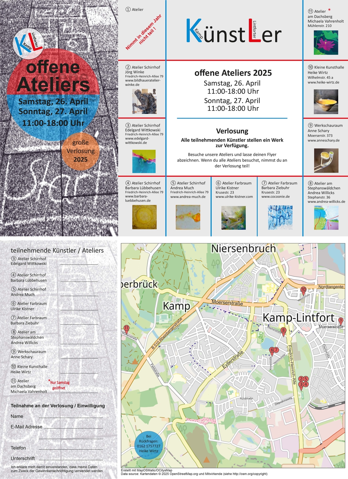 2022 | offene Ateliers, Wilhelmstr. 45a, 47475 Kamp-Lintfort 28. Kunsttage Dornum, Schloßstr. 3, 26553 Dornum (GA) | ||||